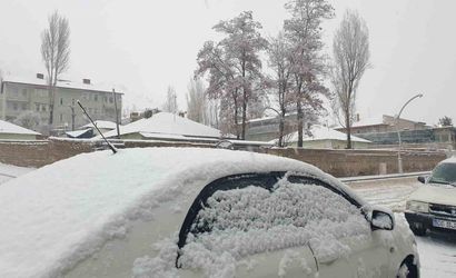 Van’ın Başkale ilçesinde sabah saatlerinde başlayan sağanak, kısa sürede yerini kara bıraktı ve ilçe beyaza büründü.