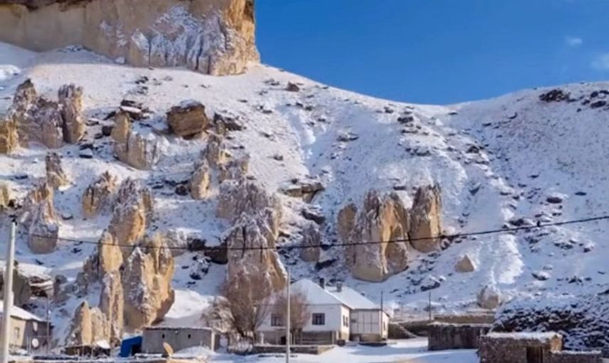 VAN’IN BAŞKALE İLÇESİNDE SABAH SAATLERİNDEN İTİBAREN KAR YAĞIŞI ETKİL OLURKEN, YÜKSEK YERLEŞİM YERLERİ BEYAZA BÜRÜNDÜ.