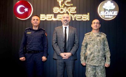 Söke Garnizon Komutanı Topçu Albay Ozan Yılmaz ve Söke İlçe Jandarma Komutanı Üsteğmen Fatih Fuçular, Söke Belediye Başkanı Dr. Mustafa İberya Arıkan'ı makamında ziyaret etti.