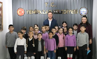 Yenipazar Belediye Başkanı Malik Ercan, ilkokul öğrencilerini belediye binasında ağırladı.