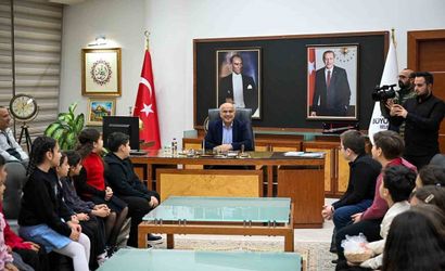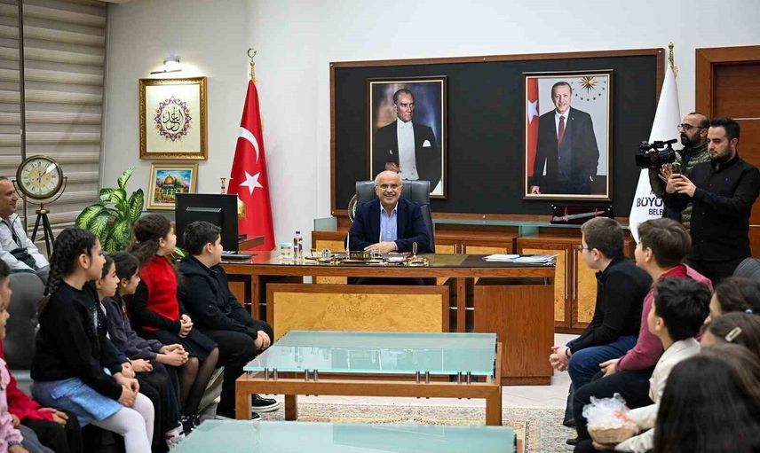 Malatya Büyükşehir Belediye Başkanı Sami Er, Malatya Büyükşehir Belediyesi Sanat Merkezi tarafından 8 Kasım'da düzenlenen 'Küçük Kalplerden Büyük Ezgiler' konserinde sahne alan çocuk korosu sanatçıları ve ailelerini makamında kabul etti.
