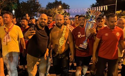 Başpehlivanlık güreşi sonrası doping kontrolü için numune veren Okulu, daha sonra Sarayiçi'nden fayton ile kent merkezine geçiş yaptı. Bankalar Caddesi'nde kalabalık bir grup tarafından coşkuyla karşılanan Okulu, tebrikleri kabul etti ve isteyenlerle fotoğraf çektirdi.