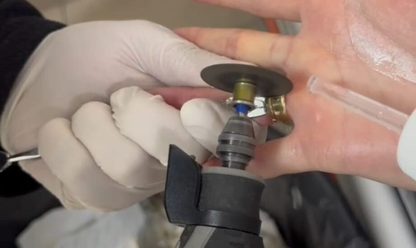 Hastaneye kısa sürede ulaşan itfaiye erleri, doktorların gözetiminde özel bir müdahale gerçekleştirdi. Parmağa zarar vermemek için büyük hassasiyetle çalışan ekip, küçük kesici spiral makine kullanarak sıkışan yüzükleri güvenli bir şekilde kesti ve çıkardı.