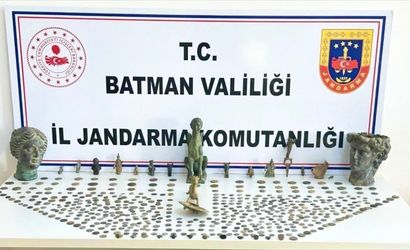 Batman’da düzenlenen tarihi eser operasyonunda, 802 sikke, 29 obje, 2 büst ve heykel ele geçirildi.