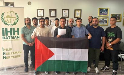 "Okullar, hastaneler, ibadethaneler ve sivillerin üzerine bombalar yağmakta. Bir halkın yok edilmesi üzerine kurulu bu vahşeti lanetliyoruz. Batman İHH olarak buradan yüksek sesle ilan ediyoruz, bu sadece Filistin'in meselesi değildir. Bu insanlığın onur sınavıdır. Gazze'de dökülen her damla kan, Kudüs'te, İstanbul'da, Mekke'de, Medine'de, Bosna'da, Doğu Türkistan'da ve dünyanın dört bir yanında vicdanı olan herkese dokunmaktadır. Sessiz kalmak, bu katliama ortak olmaktır. Bugün zalime karşı en büyük direnişlerden biri Sumud Filosu'dur. Sumud, sabır, sebat, direniş ve onurlu bir dik duruştur. Filistin halkının yanına insani yardım ulaştırmak, ablukayı kırmak ve dünyaya zulmü haykırmak için yola çıkan bu filoya sahip çıkmak insanlığın namusunu korumaktır. Biz bütün imkanlarımızla, gönlümüzle ve dualarımızla Filistin'in yanındayız. Sumud Filosu'na desteğimizi bir kez daha yineliyoruz. Bütün vicdan sahibi insanları bu kutlu mücadeleye omuz vermeye çağırıyoruz."