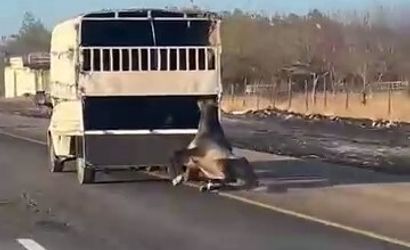 Batman-Siirt çevre yolunda bir kamyonetin arkasına bağlı olarak taşınan atın yola düşüp kilometrelerce sürüklendiği anlar, yolcuların cep telefonu kamerasına yansıdı.