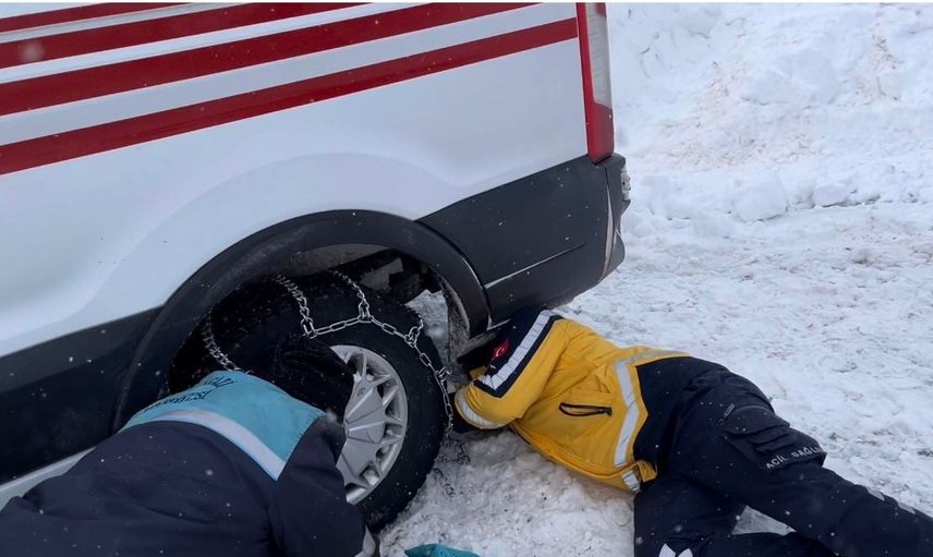 Yaygın Mahallesi Seyrekler mezrasında kalp hastası 75 yaşındaki Burhan Polat’ın rahatsızlanması üzerine yola çıkan 112 sağlık ekipleri, karla kaplı yollarda ilerleyemeyince Battalgazi Belediyesi’nden yardım istendi. Belediye ekipleri tarafından yollar açılırken ambulansın ilerleyebilmesi için araca zincir takıldı ancak verilen mücadeleye rağmen ambulans çıkamayınca sağlık ekipleri iş makinesi yardımıyla hastanın bulunduğu eve götürüldü.