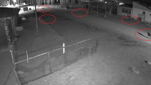 Bayburt Oruçbeyli'de 5 kurdun bir köpeği tuzağa çekmeye çalıştığı anlar güvenlik kamerasına yansıdı. Köy sakinleri kurtların yerleşimlere yaklaşmasından endişe ediyor.