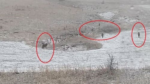 Bayburt’un Adabaşı, Kavacık ve Konursu köylerine inen kurt sürüleri, cep telefonu kamerasına yansıdı; hayvanlar soğuk ve yiyecek arayışı içinde.