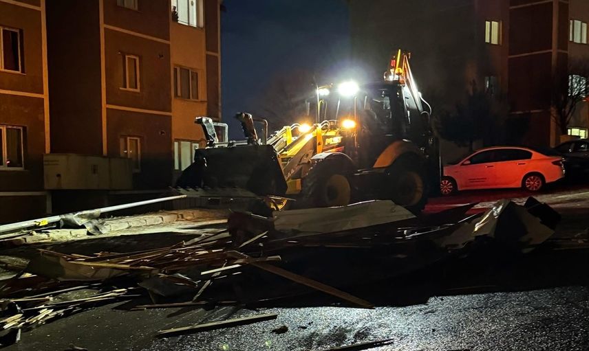 Düşen çatı parçaları, güçlü rüzgarın etkisiyle etrafa dağıldı. Bu durum, vatandaşlar için tehlike oluştururken, polis de güvenlik önlemleri alarak tehlikeli bölgeleri kapattı.