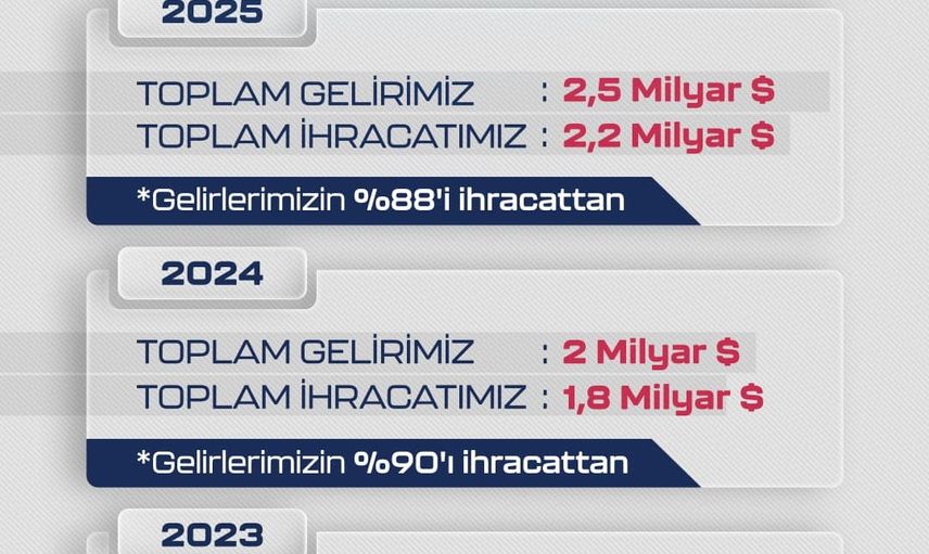 2025'te Baykar'ın toplam geliri 2.5 milyar dolar olarak kaydedildi. Şirketin gelirlerinin %88'i ihracattan sağlanırken, Savunma Sanayii Başkanlığı’nın konferansında açıklanan verilere göre Baykar, Türk savunma sanayinin ihracat şampiyonları arasında ikinci sırada yer aldı.