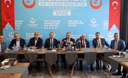 BBP Genel Başkanı Mustafa Destici (ortada), Sivas Belediyesine ait sosyal tesislerde sivil toplum kuruluşu temsilcileri ve basın mensuplarıyla bir araya geldi.
