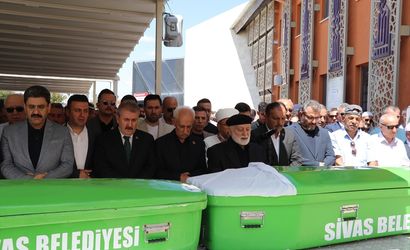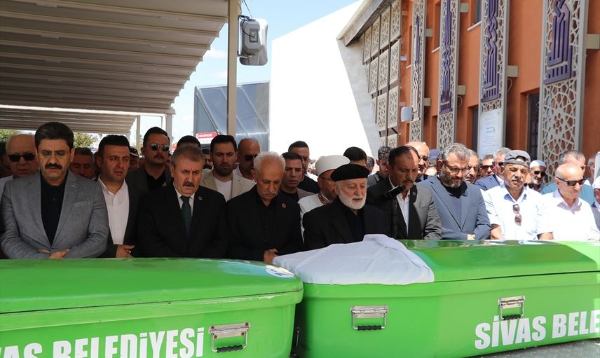 Büyük Birlik Partisi (BBP) Genel Başkanı Mustafa Destici (sol 3), partisinin Sivas İl Başkanı Ahmet Polat'ın eşinin cenaze törenine katıldı. Törene Vali Yardımcısı İhsan Maskar (sol 2), AK Parti Sivas Milletvekili Hakan Aksu (solda) ve vatandaşlar da katıldı.