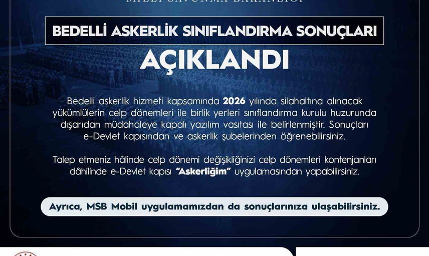 BEDELLİ ASKERLİK KAPSAMINDA 2026 YILI SINIFLANDIRMA SONUÇLARI AÇIKLANDI