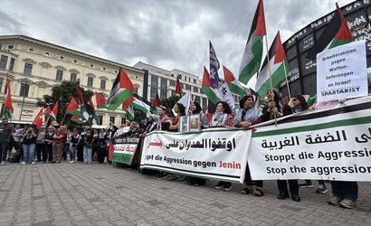 Gösteriler, Mehring Meydanı’nda da devam etti. Burada bir araya gelen yüzlerce kişi, İsrail’in Gazze’deki soykırımını protesto etti. Göstericiler, "Terörist İsrail", "Filistin’e özgürlük", "Soykırımı durdurun", "Biz binleriz, biz milyonlarız, Filistin özgür olacak", "Siyonizm suçtur", "Gazze sen ağlama, Filistin özgür kalacak" sloganlarını attı.