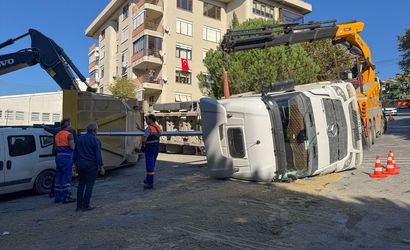 Ulus Mahallesi Kelaynak Sokak'taki inşaat alanında, 34 KAD 375 plakalı taş yüklü kamyon dorsesini kaldırarak yük boşalttığı sırada yan yattı. Kazada sürücü yaralanırken, devrilen kamyon park halindeki hafif ticari araca zarar verdi.