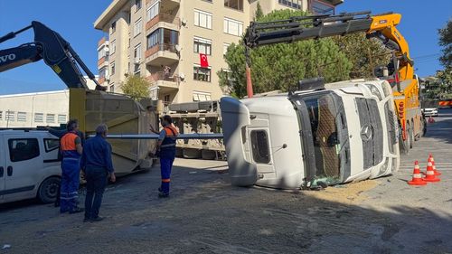 Beşiktaş'ta taş yüklü kamyon devrildi: sürücü yaralandı