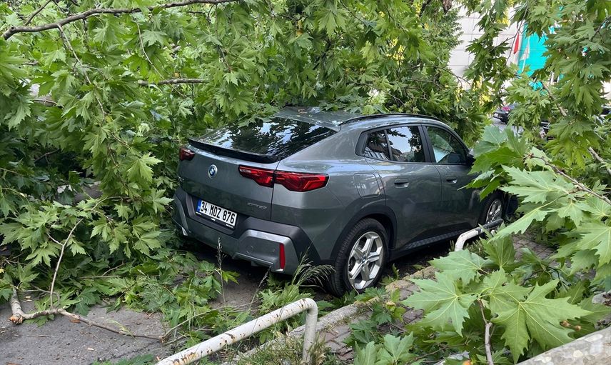 Beşiktaş'ta Türkali Mahallesi Nüzhetiye Caddesi'nde, üzerine ağaç devrilen 3 araç hasar gördü.