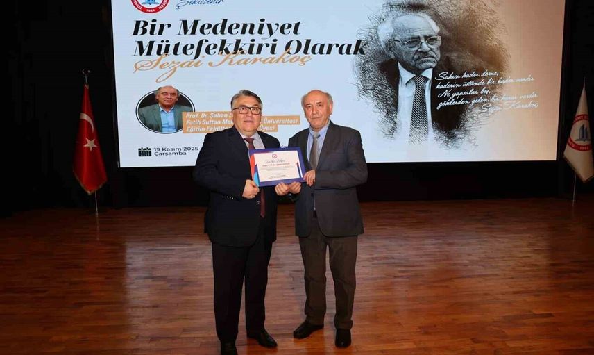 Prof. Dr. Şaban Sağlık, "Bir Medeniyet Mütefekkiri Olarak Sezai Karakoç" başlıklı sunumunda Karakoç'un düşünce dünyasının kökenlerini ve etkilerini detaylandırdı. Sağlık, Karakoç'un ilhamını Yahya Kemal'den Yunus Emre'ye, Mevlânâ'dan Hacı Bektaş Veli'ye, Necip Fazıl Kısakürek'ten Mehmet Âkif Ersoy'a kadar uzanan büyük irfan ve edebiyat geleneğinden aldığını aktardı.
