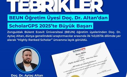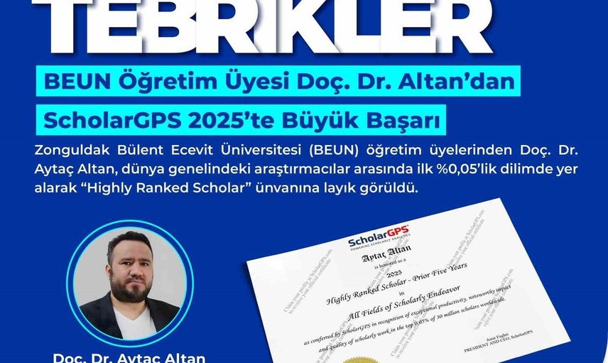 Uluslararası akademik performans ve etki analiz platformu ScholarGPS tarafından açıklanan 2025 Scholar Rankings sonuçlarına göre, Zonguldak Bülent Ecevit Üniversitesi (BEUN) öğretim üyelerinden Doç. Dr. Aytaç Altan önemli bir başarıya imza attı. Altan, dünya genelindeki araştırmacılar arasında ilk %0,05’lik dilimde yer alarak "Highly Ranked Scholar" ünvanına layık görüldü.