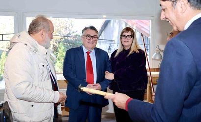 ZONGULDAK BÜLENT ECEVİT ÜNİVERSİTESİ (BEUN) REKTÖRÜ PROF. DR. İSMAİL HAKKI ÖZÖLÇER VE EŞİ SERAN ÖZÖLÇER, "TÜRK KÜLTÜRÜNDE ŞEHADET VE VUSLAT" BAŞLIKLI KONFERANSIN KONUŞMACISI YAZAR DR. SAİT BAŞER VE EŞİ FATMA BAŞER İLE BİRLİKTE DEVLET KONSERVATUVARI ÇALGI YAPIM ATÖLYESİNİ ZİYARET ETTİ.