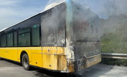 Beykoz'da, seyir halindeki İETT otobüsünün motor kısmında çıkan yangın söndürüldü.