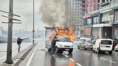 Beylikdüzü'nde D-100 kara yolunda yanan kamyonette büyük hasar meydana geldi. İtfaiye ekipleri yangını söndürdü.