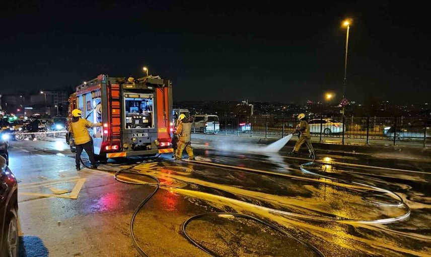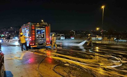 Alevlere teslim olan taksi, çekici yardımıyla bölgeden kaldırıldı. Yangın nedeniyle motor kısmından yola dökülen yağ itfaiye ekiplerince temizlendi. Olayla ilgili olarak yetkililer tarafından inceleme başlatıldı.