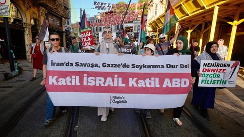 Filistin'e özgürlük gönüllüleri, İsrail'in Gazze ve İran'a yönelik saldırılarını Beyoğlu'nda protesto etti.