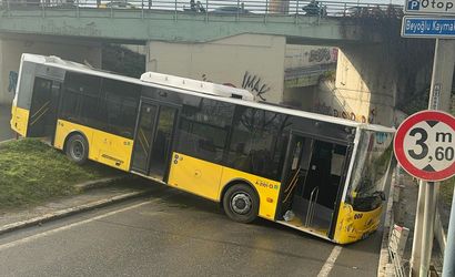 Beyoğlu'nda kontrolden çıkan İETT otobüsü, refüjü aşıp karşı şeride geçerek bariyerlere çarptı.
