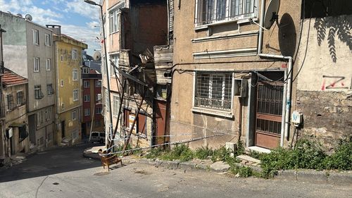 Beyoğlu'nda yokuşta kayan çöp kamyonu, park halindeki otomobile ve boş bir binaya çarparak hasara yol açtı.
