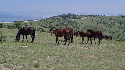 Beypazarı'nda yılkı atları ve yavruları doğal yaşam alanlarında görüntülendi. Yerel muhtar, atların korunmasına dikkat ettiklerini açıkladı.