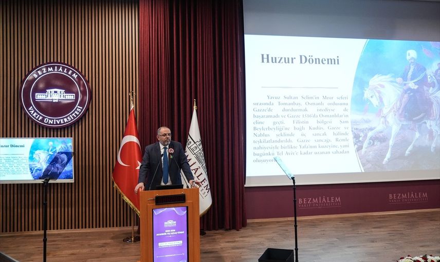 Afyoncu, birçok alanda bazı Yahudi tarihçilerin yönlendirmeler yaptığını ve Filistin bölgesinde asırlardır kendilerinin var olduğunu iddia ettiklerini belirtti. Filistin bölgesinin son 3 bin yılında İsrailoğulları, Babil, Pers, Roma, Bizans ve Araplar gibi pek çok aktörün bulunduğunu söyledi. 878'de Orta Doğu'ya yeni bir aktör olarak Türklerin geldiğini, Mısır'da bir Türk devleti kurduklarını ve Gazze ile Filistin bölgesini ele geçirdiklerini anlattı.