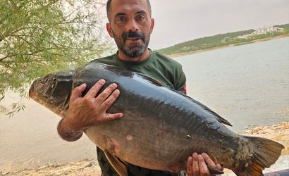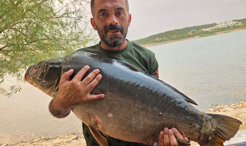 Bilecik'te sportif olta balıkçılığı yapan Tamer Sargıl, Pelitözü Göleti'nde 28 kilo 600 gram ağırlığında sazan avladı.