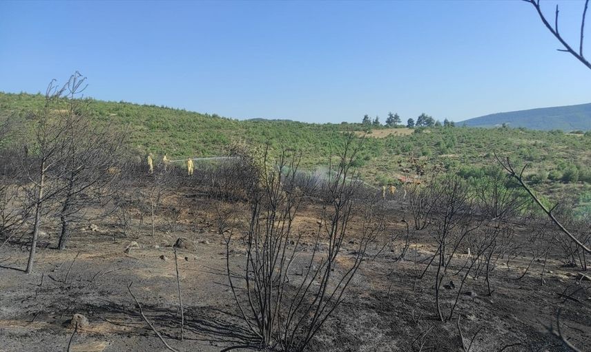 Bilecik'in Osmaneli ilçesinde çıkan yangında yaklaşık 5 dönüm buğday tarlası ve 2 hektarlık ormanlık alan zarar gördü.