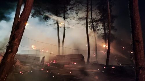 Bilecik'in Gölpazarı ilçesinde başlayan yangın, çiftlikte 95 küçükbaş hayvanın telef olmasına neden oldu. Yangın kontrol altına alınmaya çalışılıyor.