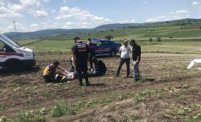 Bilecik'in Bozüyük ilçesinde, tarlaya zorunlu iniş yapan bir eğitim uçağı, arazideki tümseklere çarparak ters döndü.