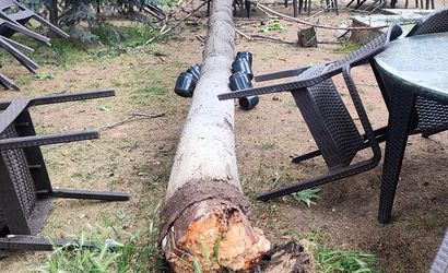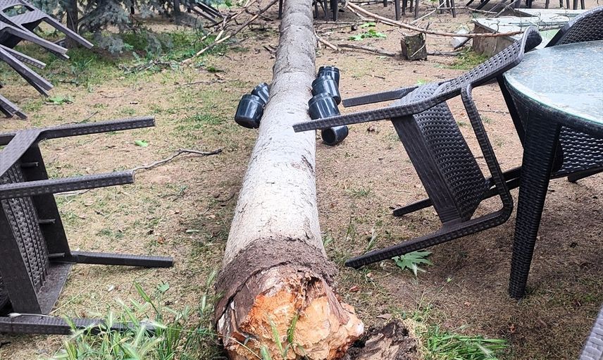 Bilecik'te, gün içinde etkili olan fırtınada zarar gören ağaç bir kafenin bahçesine devrildi.