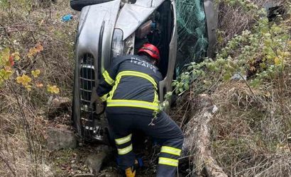 Bilecik'te seyir halindeyken frenleri tutmayarak uçuruma yuvarlanan hafif ticari aracın sürücüsü, kaza sonrası burnu bile kanamadan kurtuldu.