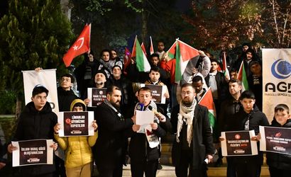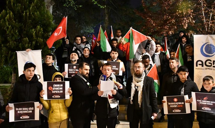 Bilecik'te, Anadolu Gençlik Derneği (AGD) Bilecik Şubesi öncülüğünde Atatürk Parkı'nda, İsrail'in Gazze'ye yönelik saldırılarına karşı protesto düzenlendi. AGD Bilecik Üniversite Komisyonu Başkanı Erdem Gürsel, grup adına konuşma yaptı.
