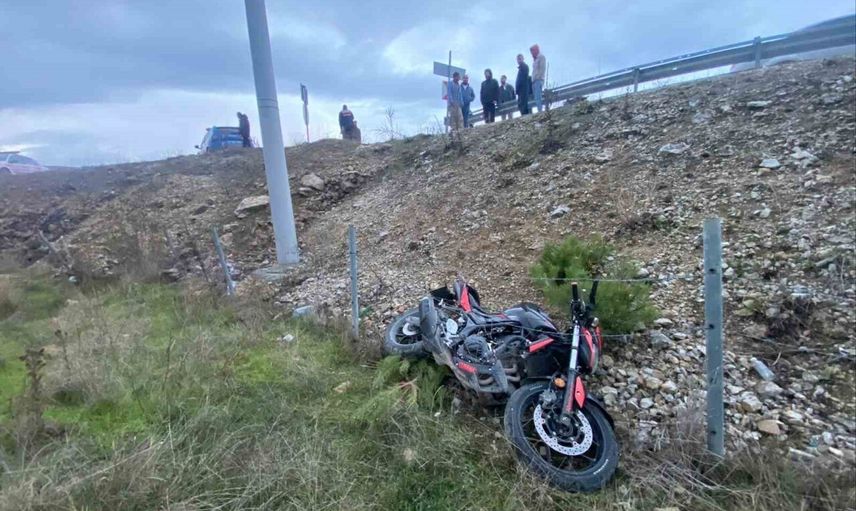 Bilecik’in Bozüyük ilçesine bağlı İçköy Kovalıca mevkiinde seyir halindeyken kontrolden çıkan bir motosiklet, önce yolun sağında bulunan refüje çarptı, ardından yaklaşık 3 metre yükseklikteki köprüden aşağı uçtu.