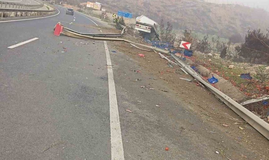 Bilecik’te kontrolden çıkan sebze yüklü tırın şarampole devrilmesi sonucu meydana gelen kazada sürücü yaralandı.