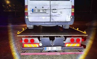 Minibüs, gerekli işlemlerin tamamlanmasının ardından çekiciye yüklenerek yediemin otoparkına çekildi.