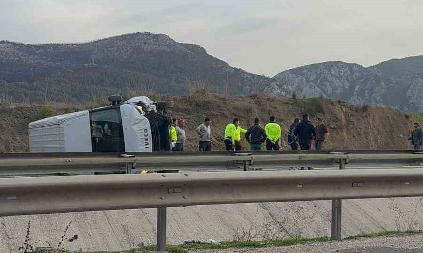 Bayırköy mevkiinde meydana gelen çarpışmada panelvan devrildi