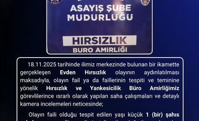 18.11.2025 tarihinde Bingöl merkezinde meydana gelen evden hırsızlık olayının faili, polis ekiplerinin çalışması sonucu yakalandı.