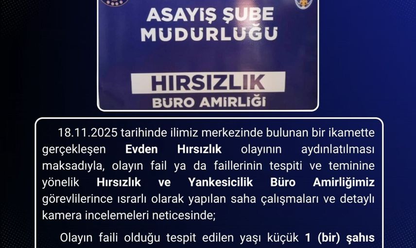 Açıklamada, olayın faili olduğu tespit edilen yaşı küçük 1 şahısın yakalandığı ve adli mercilerin talimatları doğrultusunda şahıs hakkında SSÇ sıfatıyla gerekli iş ve işlemlerin gerçekleştirildiği kaydedildi.