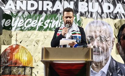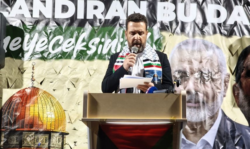 Katılımcılar, ellerinde Türk ve Filistin bayraklarıyla tekbir getirerek İsrail karşıtı sloganlar attı.