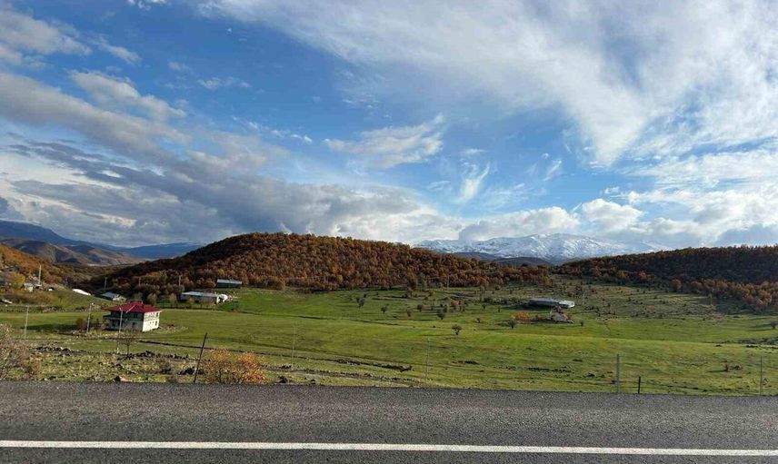Yüksek kesimlerde Bingöl’ü etkisi altına alan kar yağışıyla birlikte dağlar beyaza büründü; eteklerinde ise hâlâ devam eden sonbahar renkleri ortaya kartpostallık görüntüler çıkardı.