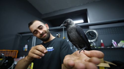 Bingöl'de motosiklet teknisyeni Mesut Aksoy, açlıktan ölmek üzereyken sahiplendiği karga Şimşek ile dost oldu.