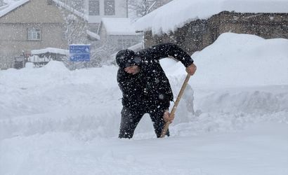 Bingöl'ün Yedisu ilçesinde kar yağışı devam etti. Vatandaşlar, kar ile kaplanan evlerinin önünü açmaya çalıştı.